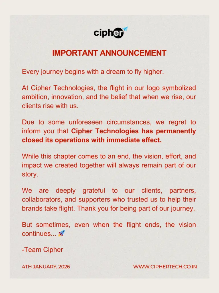 Cipher Technologies is a results-driven digital marketing agency dedicated to helping businesses grow, engage, and convert their target audiences. Our team of experts combines innovative strategies with data-driven insights to deliver custom solutions across SEO, PPC, social media, content marketing, email campaigns, and more.